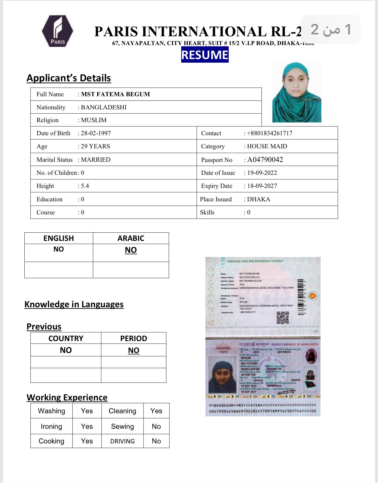 عاملة منزلية